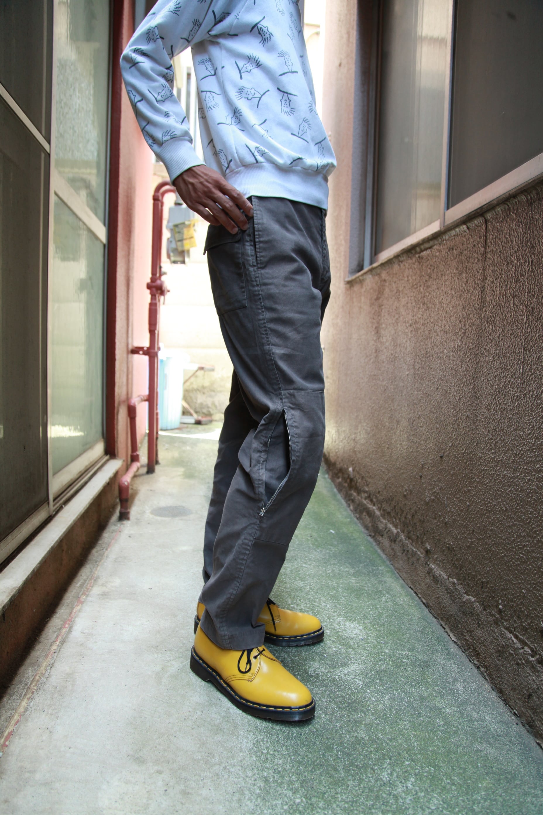 しっとりした質感のコットン地、まず使わないであろう膝のジップポケット