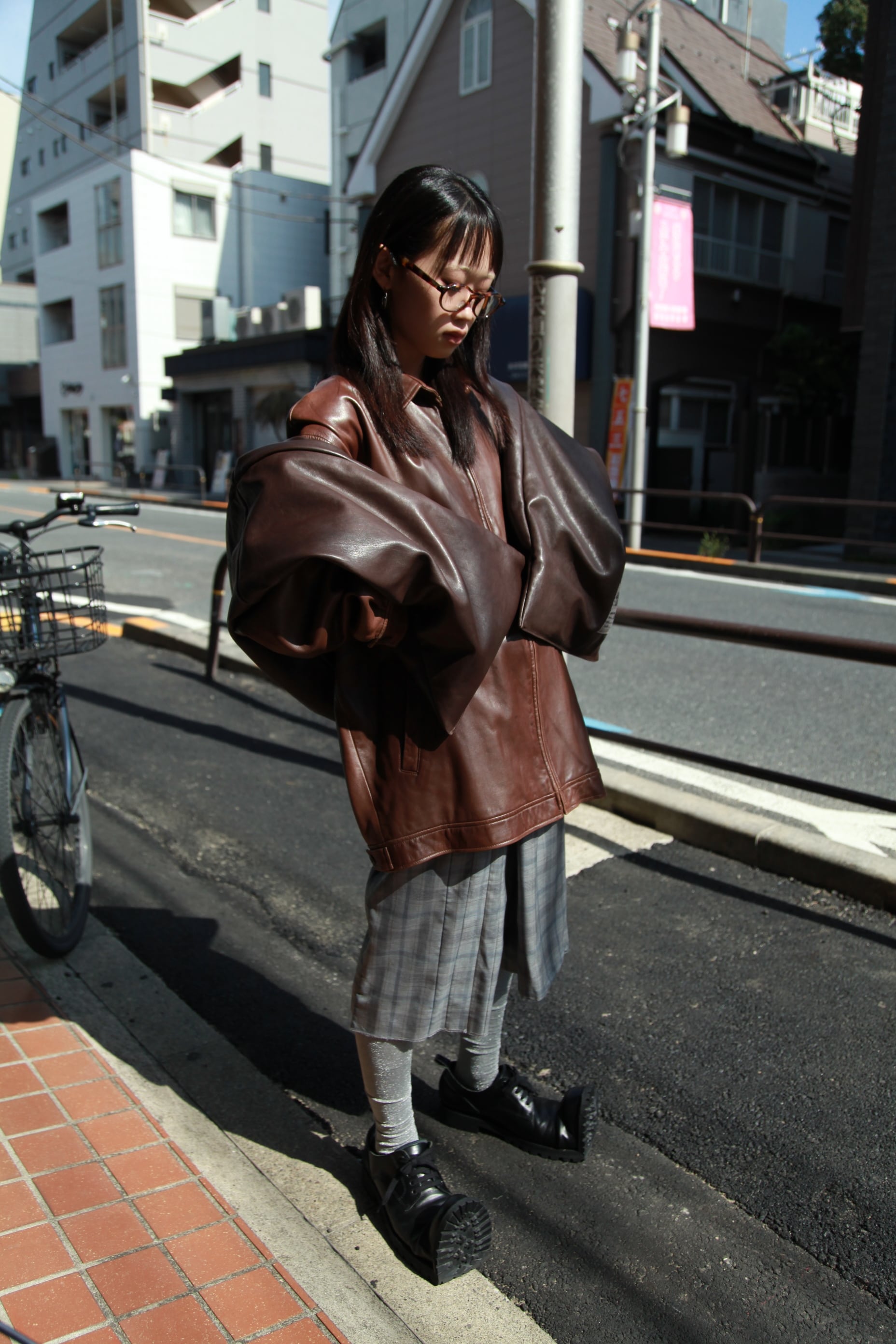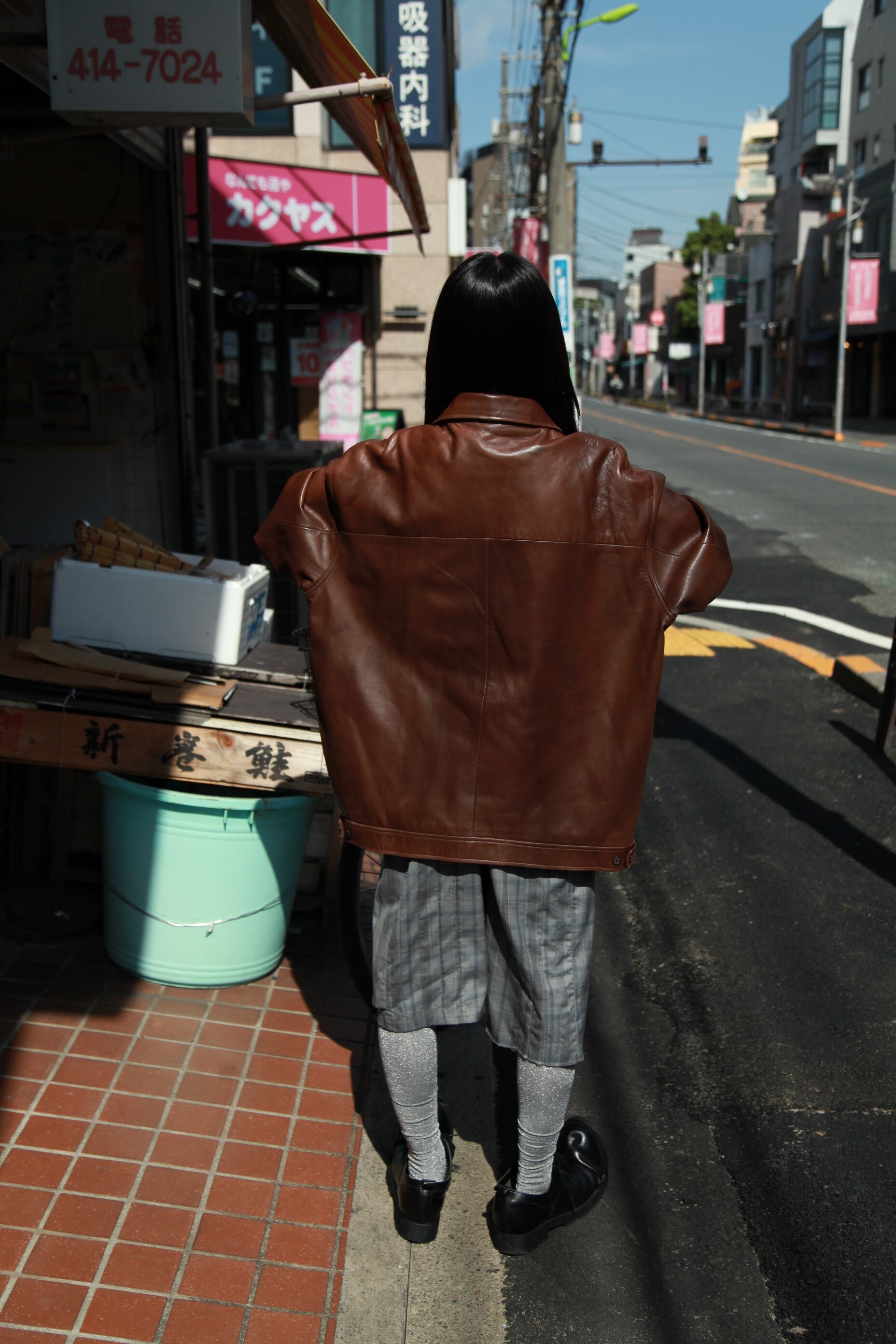 レザーのスウェングトップ