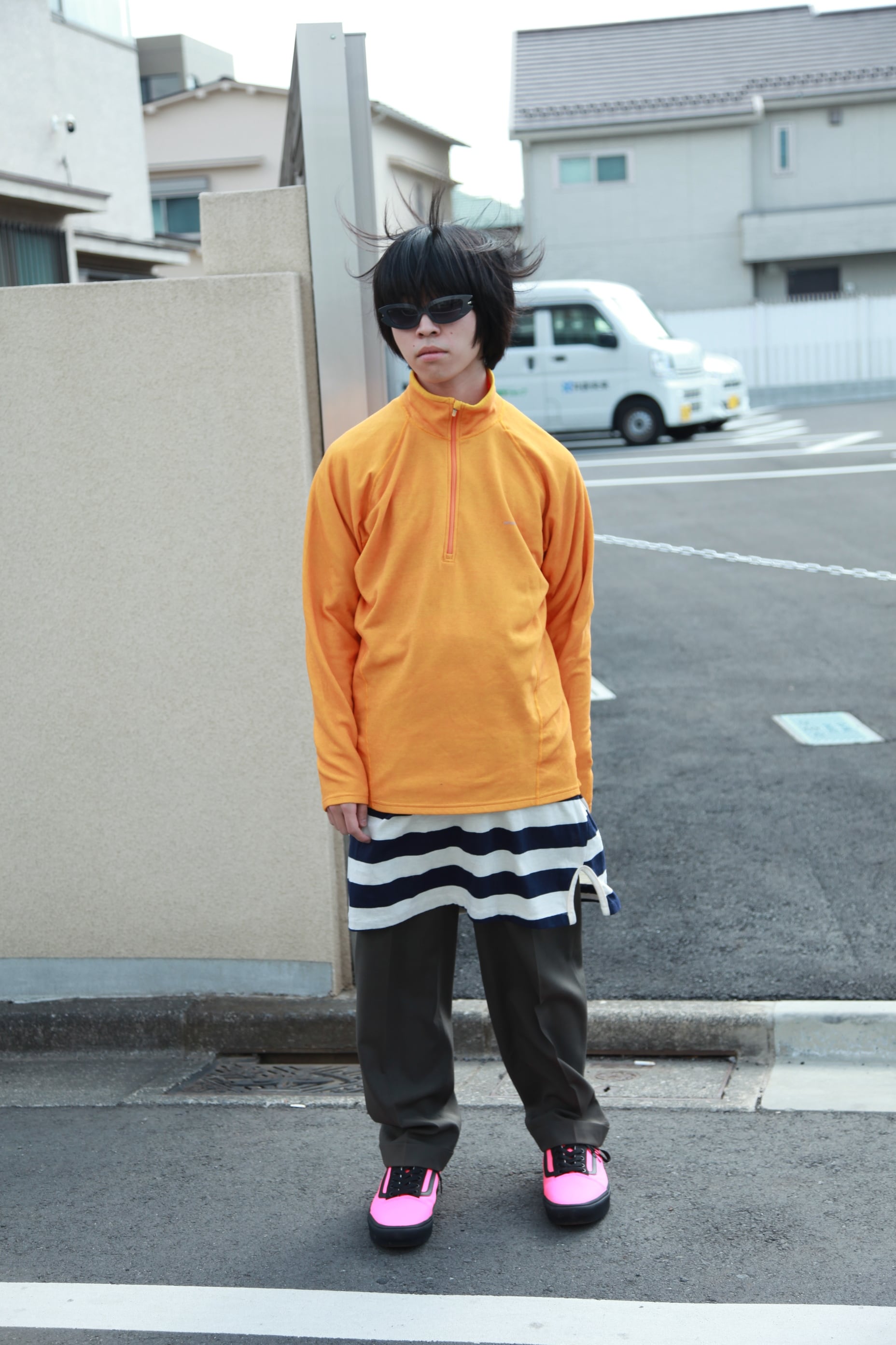 ハーフジップのオレンジ