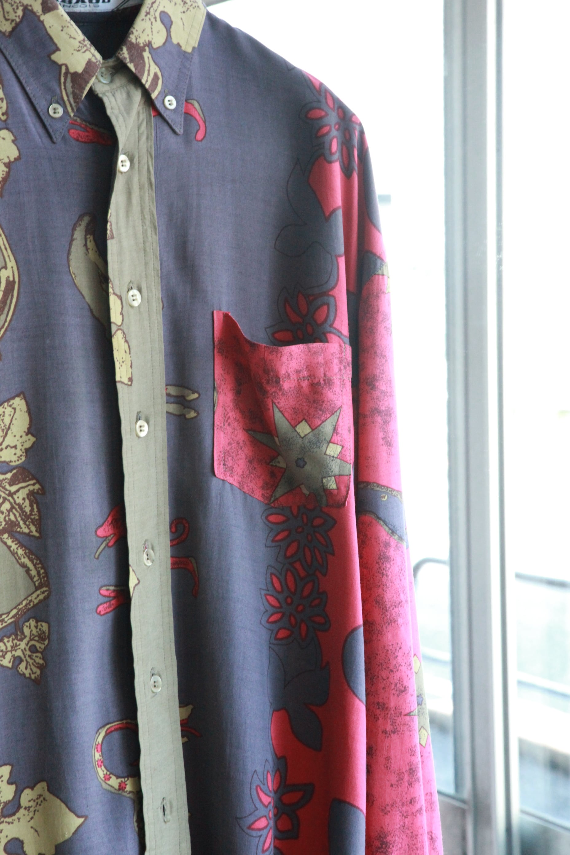 この柄でまさかのボタンダウンの仕様