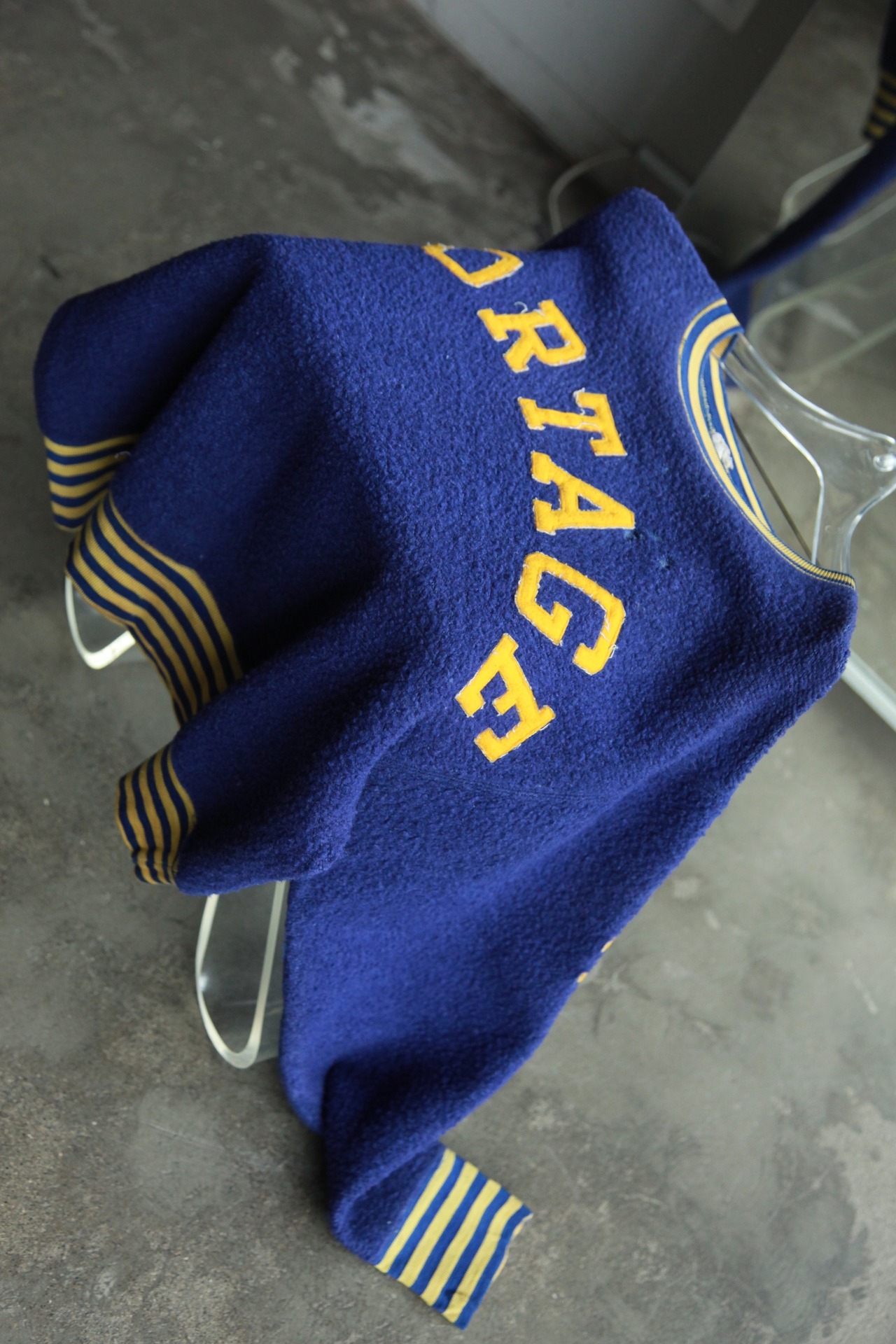 こんなのもあるんですね、リブと袖はストライプでレーヨンに切り替わってます