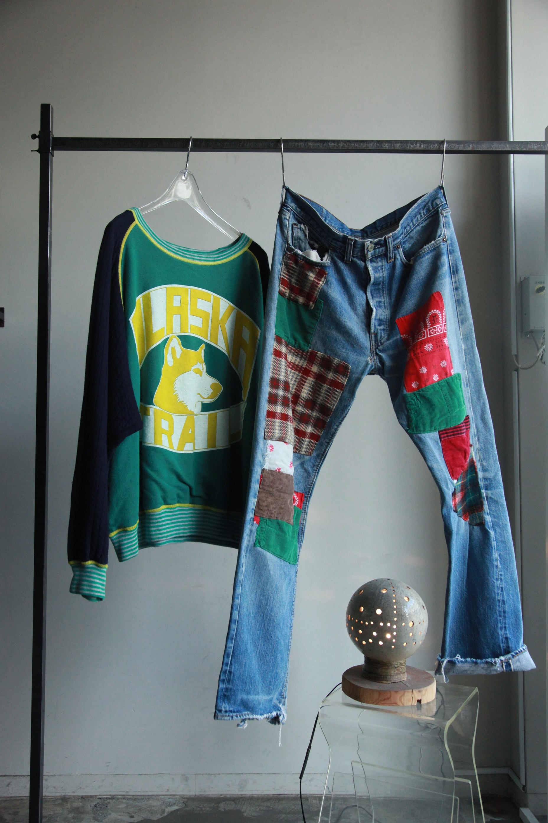 古いアルマーニのパンツに50'sのビンスウェ着たりするのも当店ではごく普通になりました