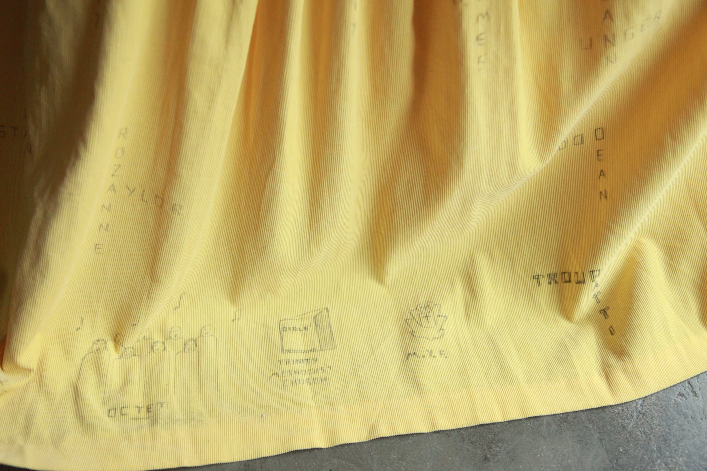 ハンドドローイングの寄せ書きが所々にあります
