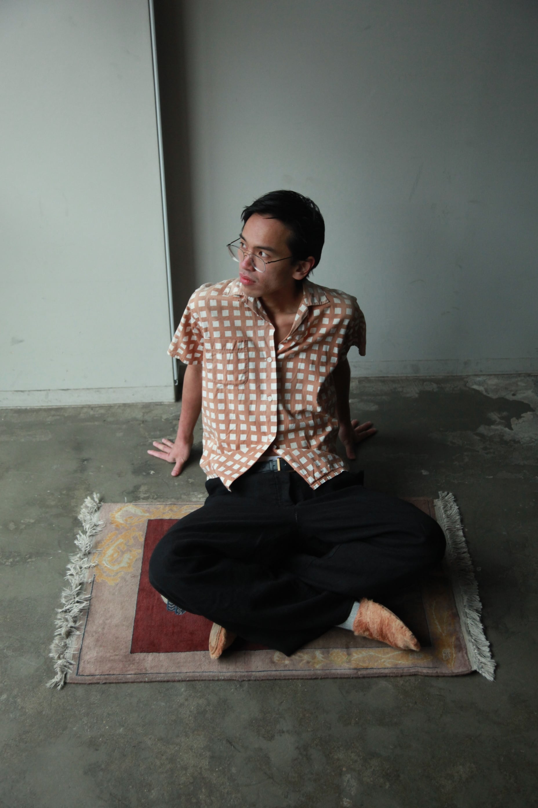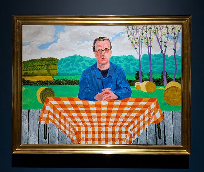 すごく良く言うとホックニーの絵のようなチェック。