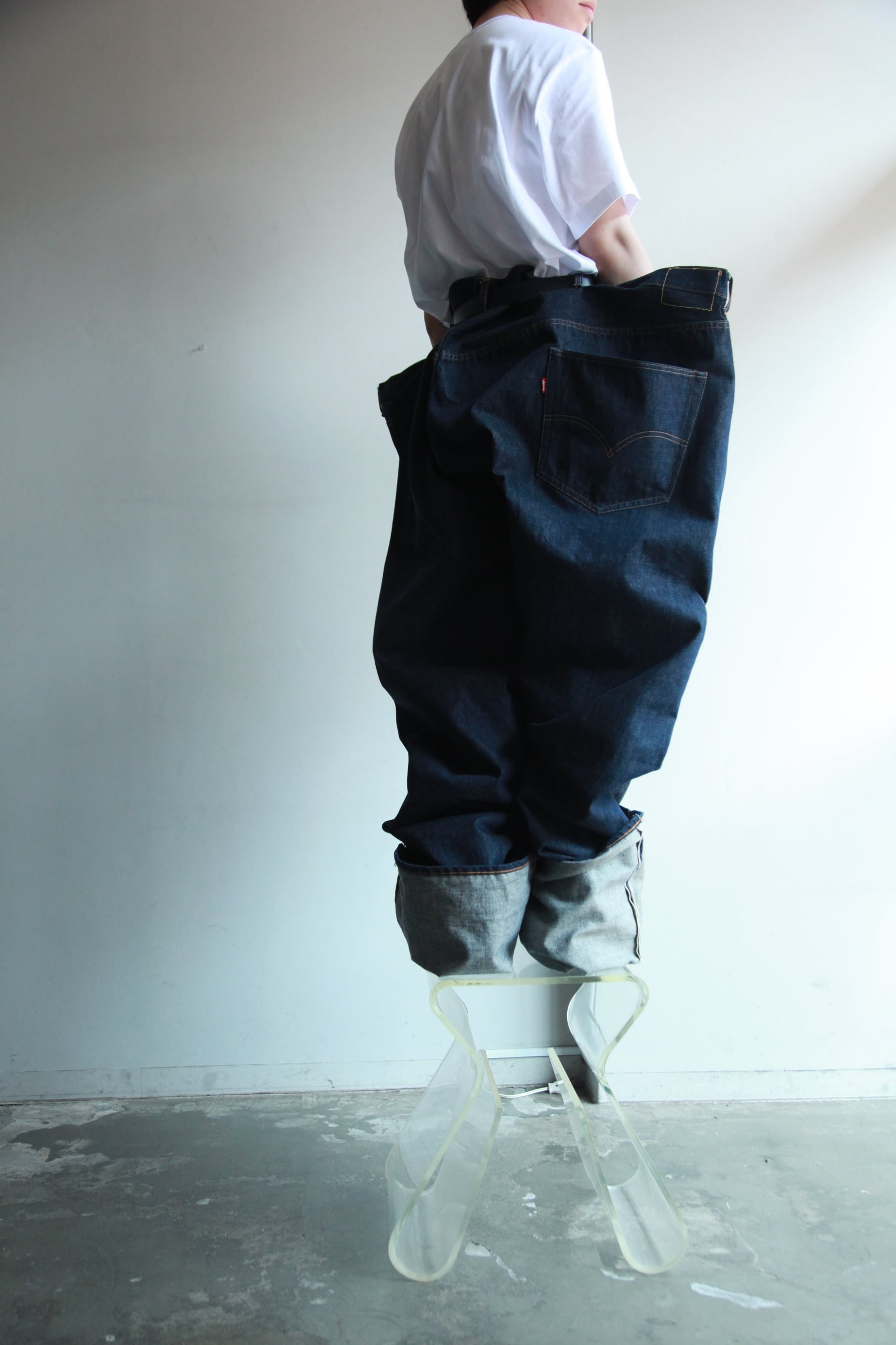 自分だったら丈直しして、ウエストの大きいのは前と後ろに折り返してステッチ入れて捻れたシルエットにしてもいいかなと思ってます