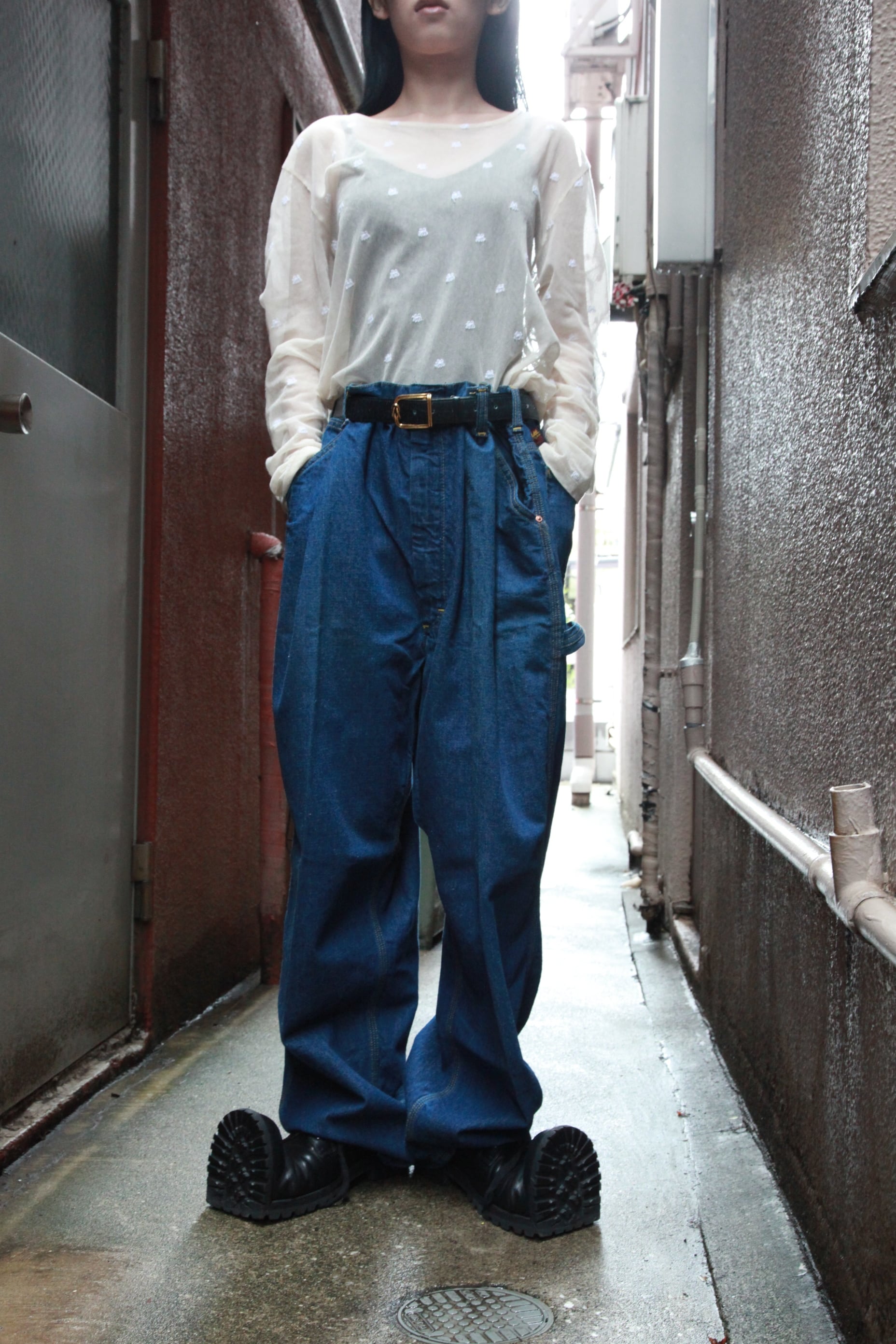 ヨレヨレのNハリのアンダーウェアに太いペインターパンツや黒の517